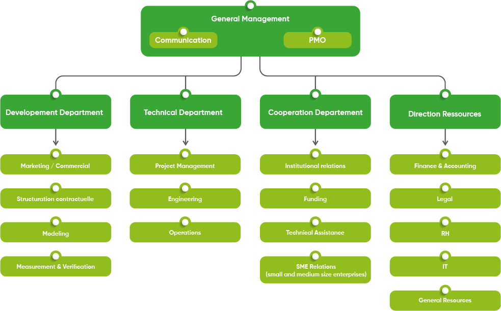 At the heart of this organization is the General Management, which directs SIE's strategic vision and coordinates its critical activities. This unit acts as the company's central pillar, leading the team towards excellence in energy efficiency.